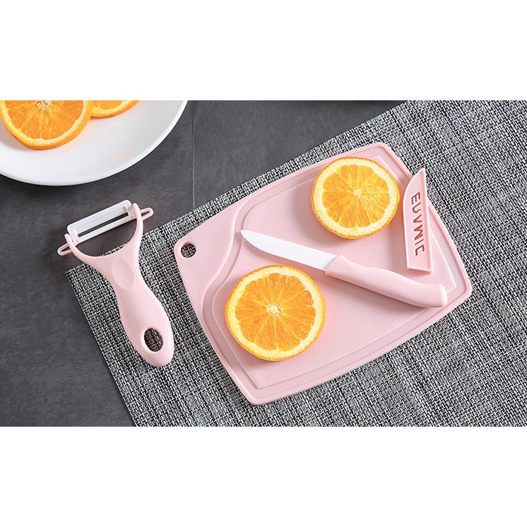 Bộ 3 món Dao, Bào ceramic sứ và Thớt nhựa - Bộ dụng cụ nhà bếp chế biến cho bé ăn dặm