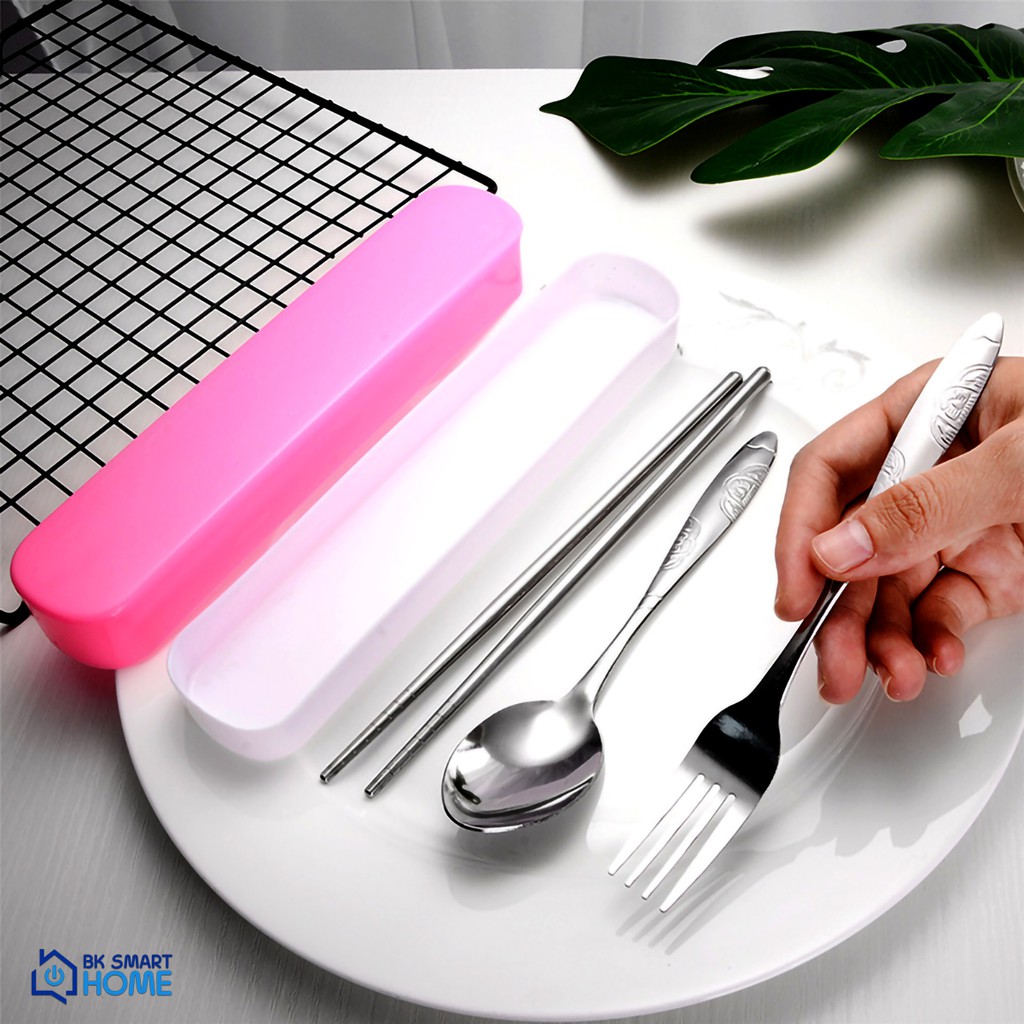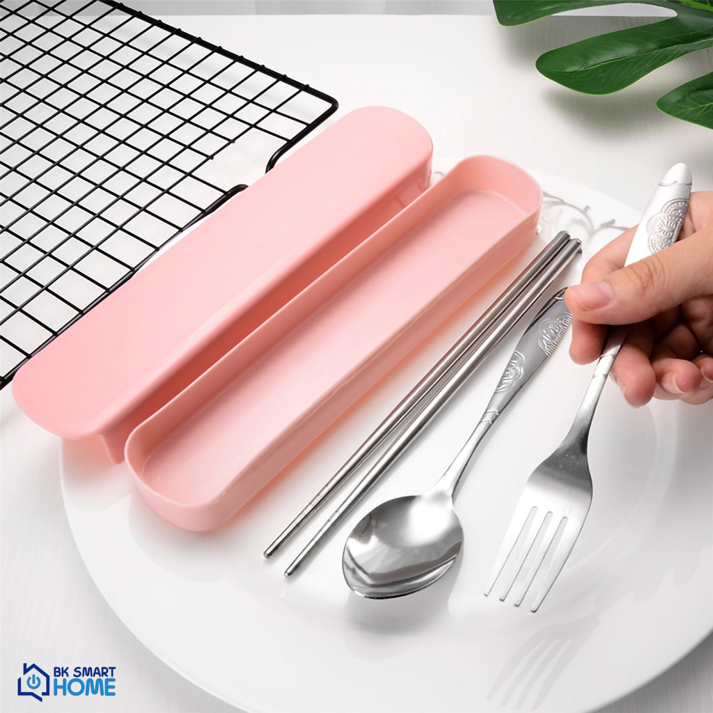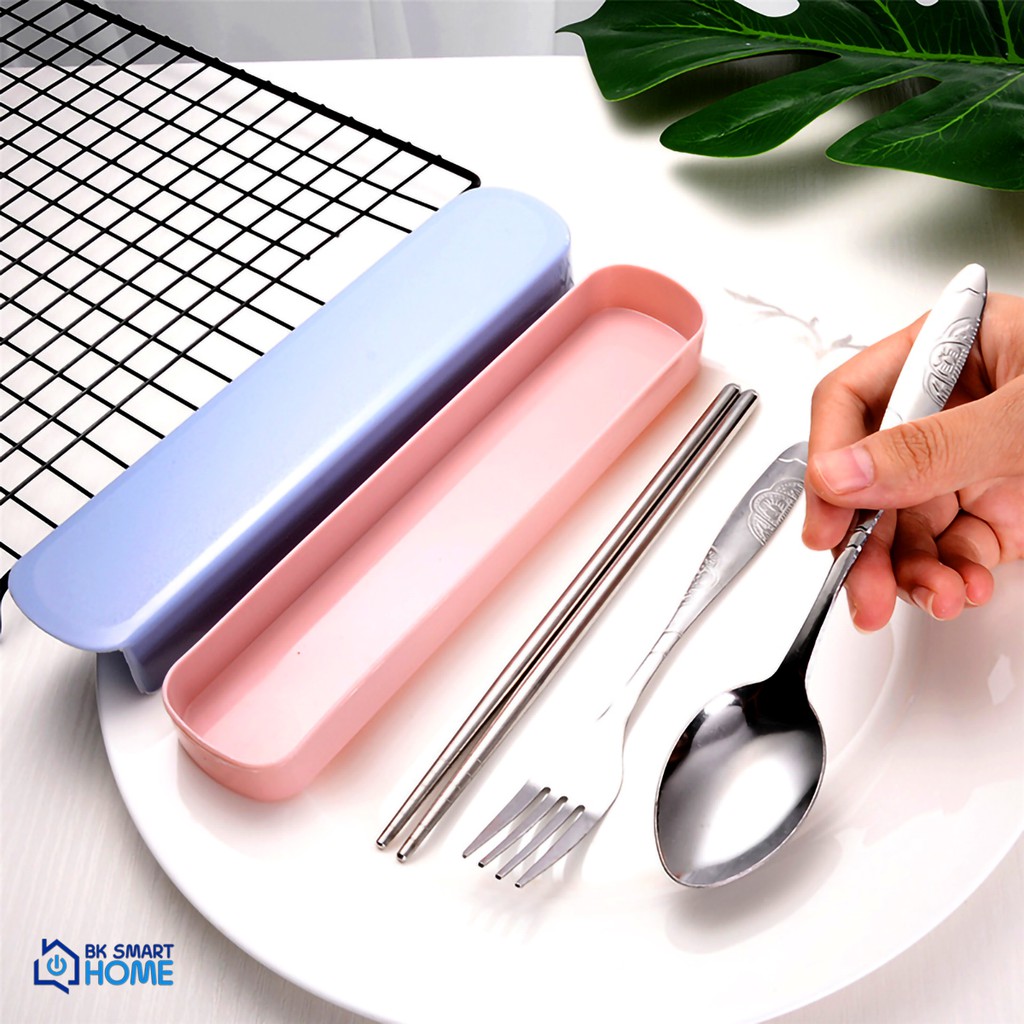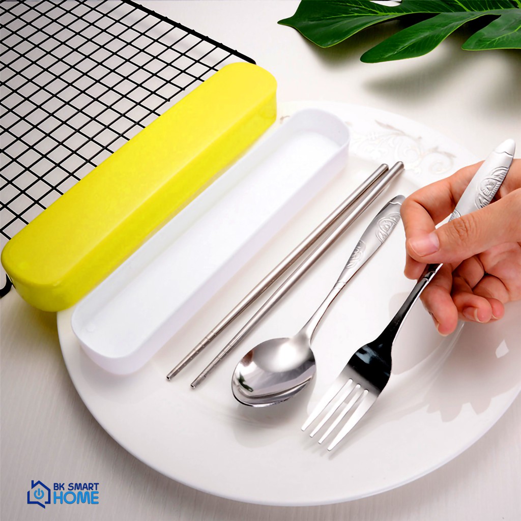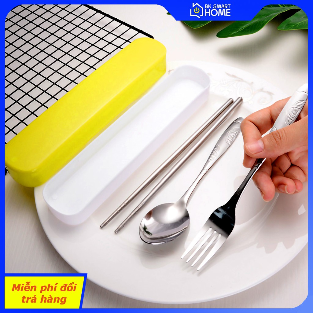 Bộ 3 món Đũa, muỗng, dĩa inox cao cấp - Có hộp đựng (Phù hợp mang cơm văn phòng)