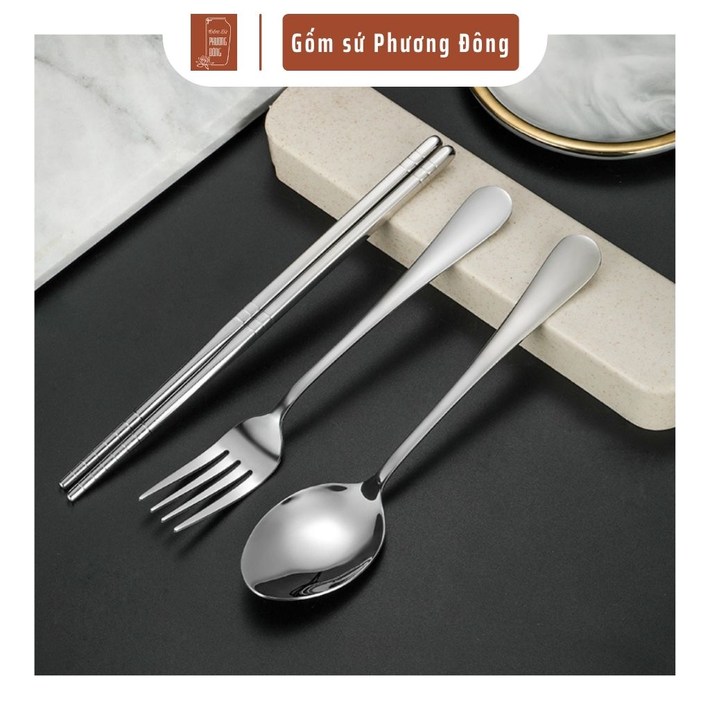 Nhà cửa & Đời sống > Bộ đồ bàn ăn > Dĩa || Bộ 3 món đũa thìa dĩa kèm hộp đựng Phương Đông chất liệu inox 304 cao cấp, bộ muỗng nĩa cá nhân PD038Còn hàng
