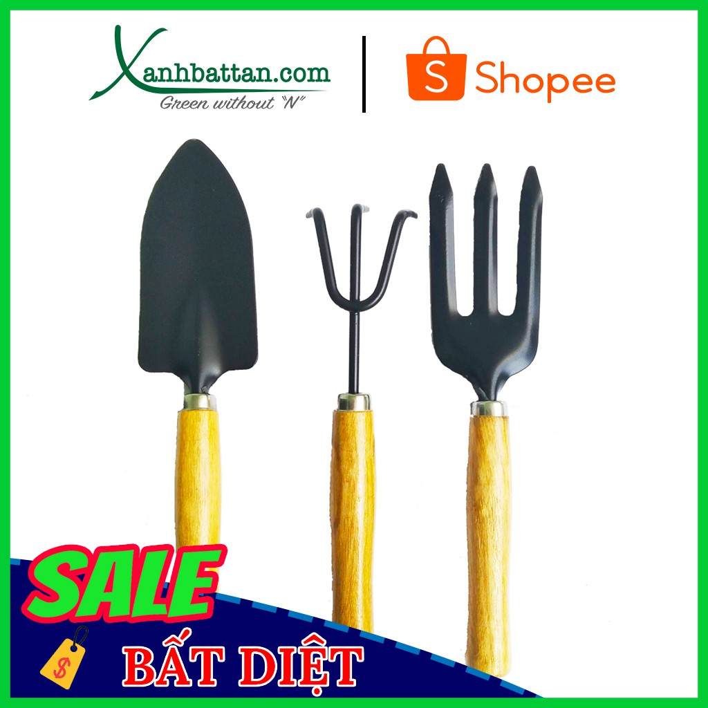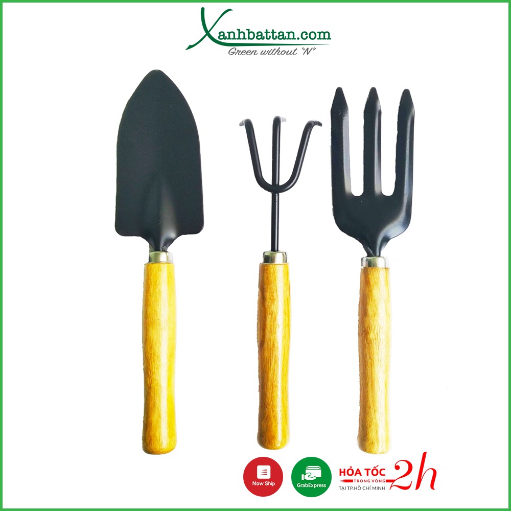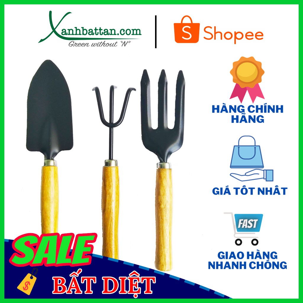 ► Bộ 03 Dụng Cụ Làm Vườn Bao Gồm:+ Xẻng xúc: Loại dụng cụ này được dùng để xúc đất, xúc phân bón,.. thuận tiện cho việc thao tác chăm sóc hay bón phân cho các loại cây trồng, hoa kiểng.