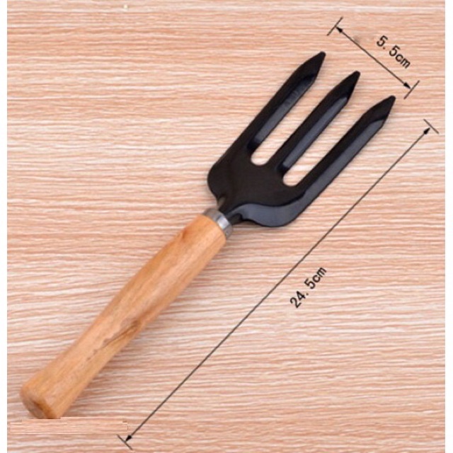 Bộ dụng cụ gồm 3 món: cào đất, xẻng, xới đấtChất liệu: gỗ + kim loại