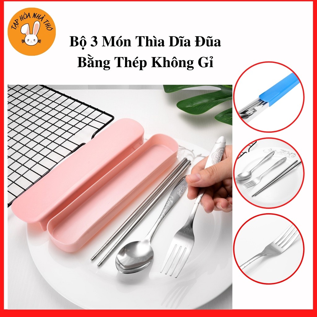 Giới thiệu Bộ 3 Món Thìa Dĩa Đũa Bằng Thép Không Gỉ Có Hộp Đựng