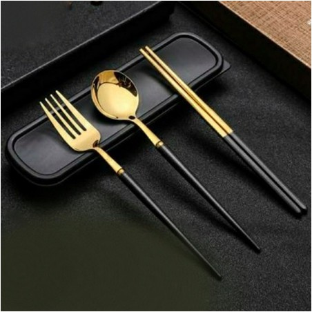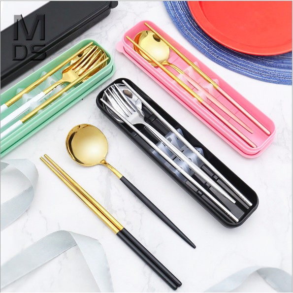 Bộ 3 món thìa, đũa, dĩa bằng Inox 304 cao cấp Có Hộp Đựng