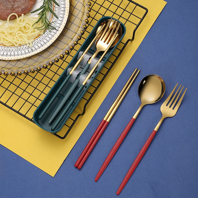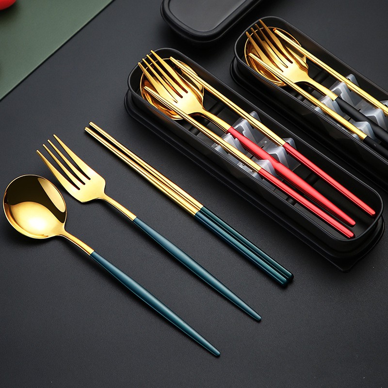 Bộ 3 Món Thìa, Đũa, Dĩa Bằng Inox 304 Cao Cấp -An toàn với sức khoẻ