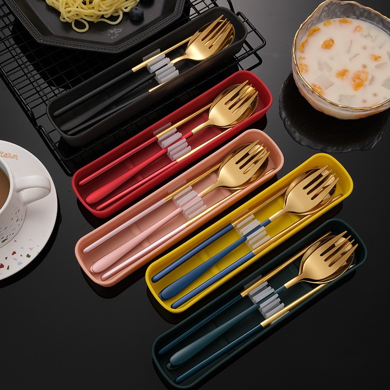 +Bộ sản phẩm bao gồm: Bộ 3 món: 01 hộp đựng + 01 thìa +01 dĩa + 01 đôi đũa