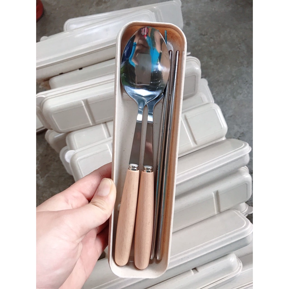 Nhà cửa & Đời sống > Dụng cụ nhà bếp > Cây vét bột & đồ gắp thức ăn || Bộ 3 Món Thìa, Đũa, Dĩa Lúa Mạch Chất Liệu Inox 304 Không Rỉ Kèm Hộp, Bộ Muỗng,Thìa, Nĩa Dùng Cá Nhân - BẾP TRỌNCòn hàng