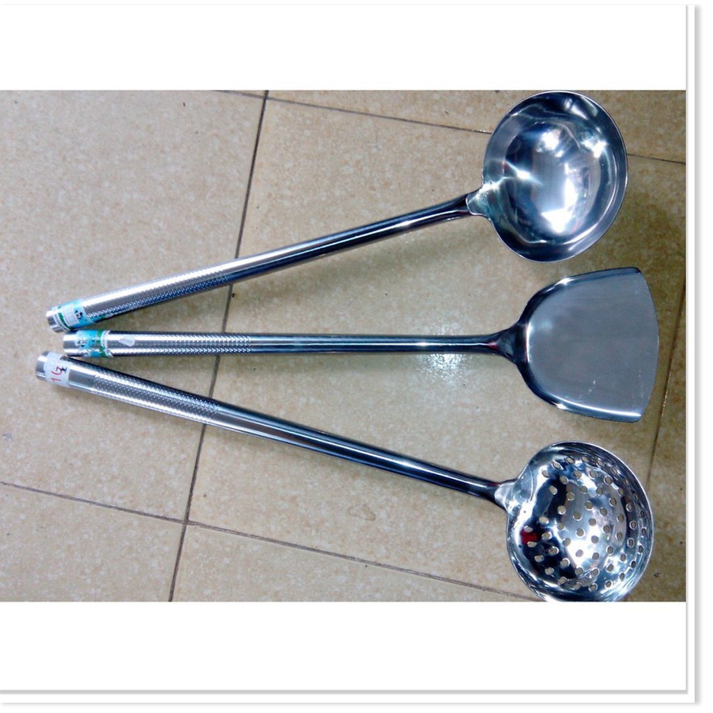 Bộ 3 muôi canh, xẻng xào, xẻng lật inox size đại dành cho bếp ăn tập thể, nhà hàng, khách sạn