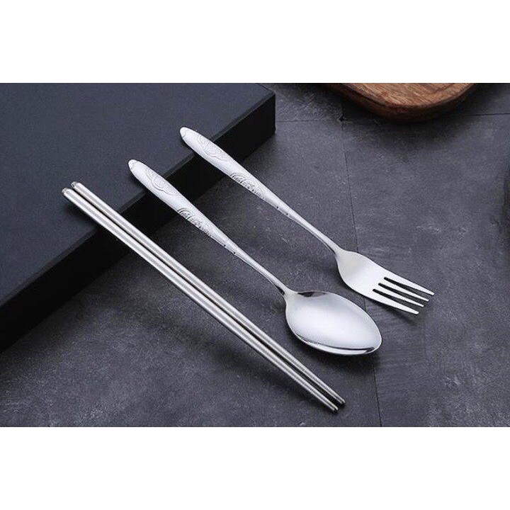Nhà cửa & Đời sống > Bộ đồ bàn ăn > Bộ dao kéo || Bộ 3 Muỗng Đũa Nĩa inox cá nhân có hộp đựng dành cho văn phòng hoặc đi du lịch tiện dụngCòn hàng