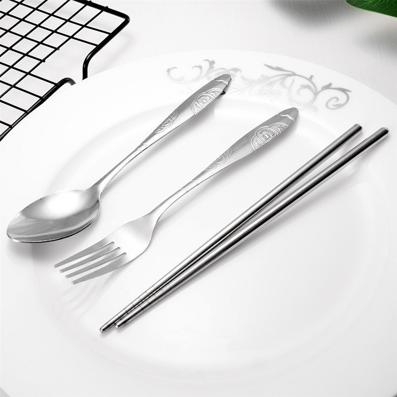Bộ 3 Muỗng Đũa Nĩa inox cá nhân có hộp đựng dành cho văn phòng hoặc đi du lịch tiện dụng