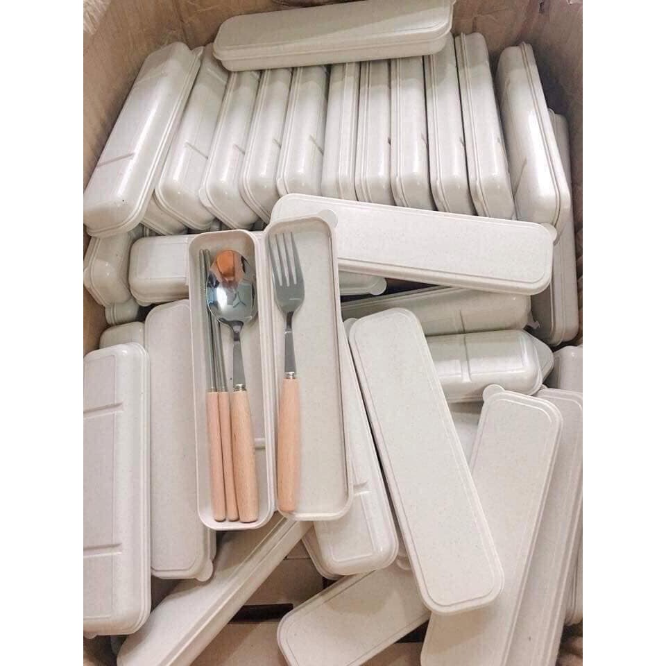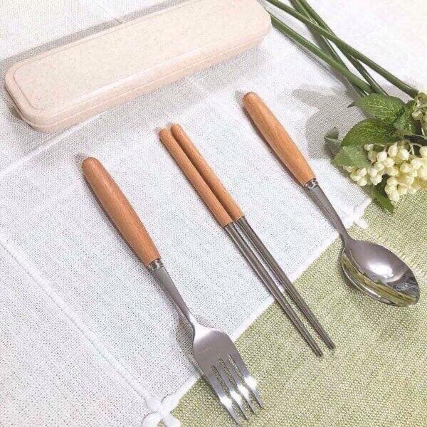 Nhà cửa & Đời sống > Bộ đồ bàn ăn > Bộ dao kéo || Bộ 3 muỗng đũa nĩa inox cán gỗ tự nhiên kèm hộp đựng lúa mạch tiện lợi du lịchCòn hàng