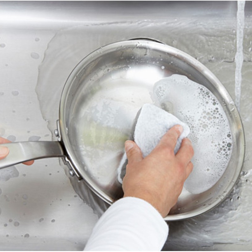 Ngoài ra sản phẩm có thiết kế 2 mặt, mặt cước dùng để tẩy sạch vết bẩn bám cứng mặt mềm dùng rửa chén, đĩa trên mọi bề mặt: men, gốm, inox, sắt, nhôm, thủy tinh… giúp hạn chề trầy xước vật dụng.