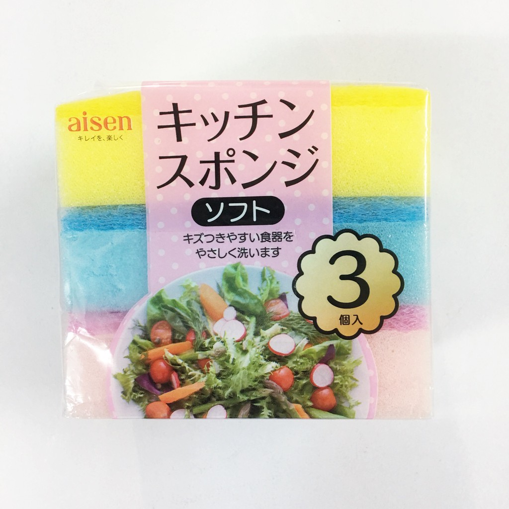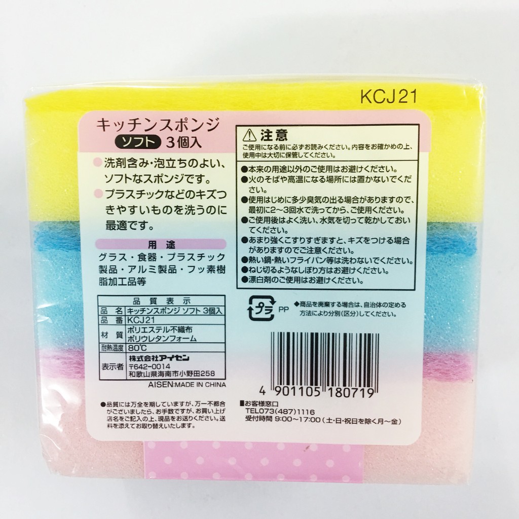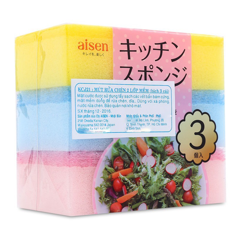 Bộ 3 mút rửa chén 2 lớp mềm Aisen Nhật Bản KCJ21 hàng nhập khẩuMô tả :