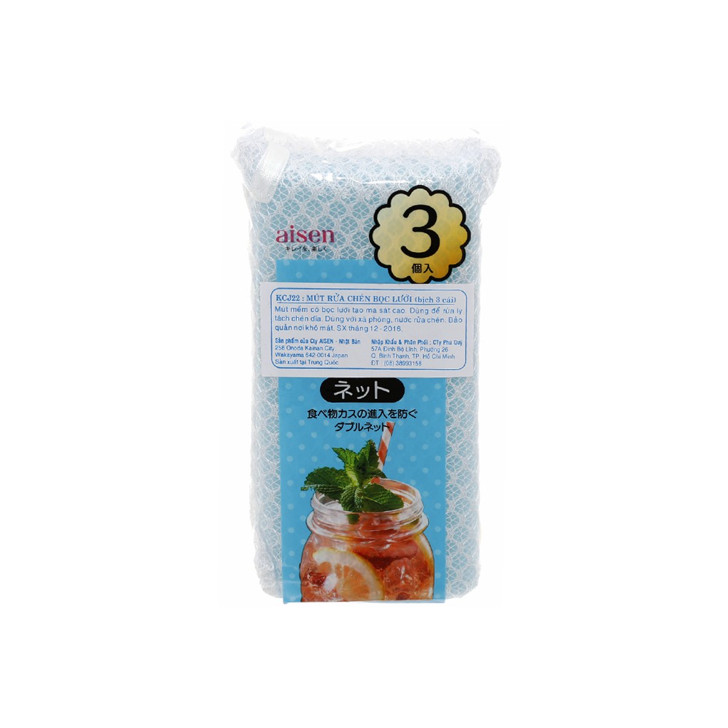 Giới thiệu Bộ 3 Mút rửa chén bọc lưới Aisen Nhật Bản KCJ22 hàng nhập khẩu