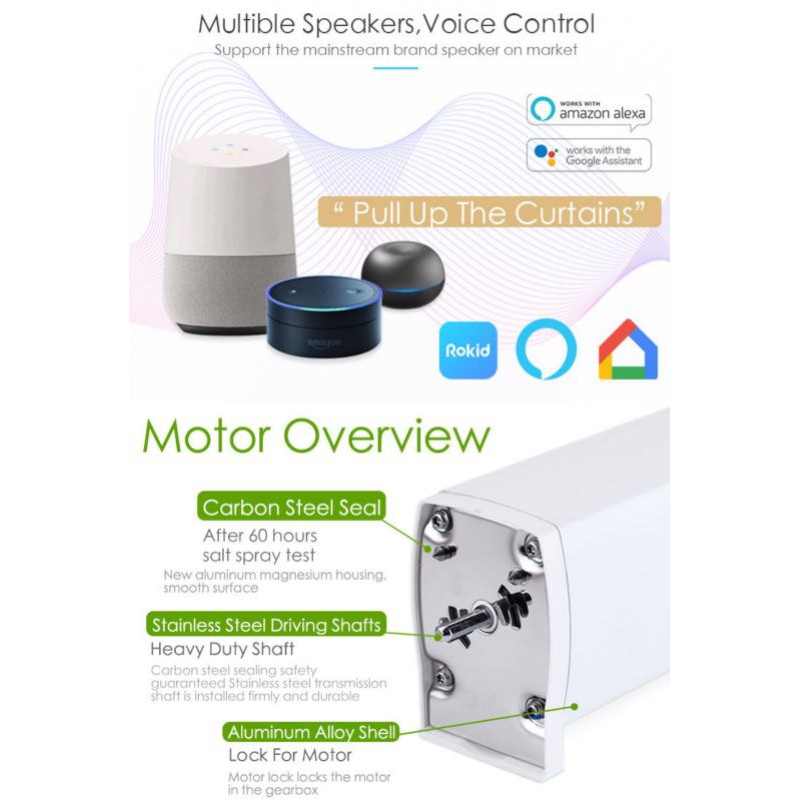 Sản phẩm có thể điều bằng Remote hoặc App Tuya hoặc Smart Life trên điện thoại và giọng nói thông qua trợ lý ảo Alexa, Google Assistant và Siri. Đóng mở thông thường hoặc theo %.