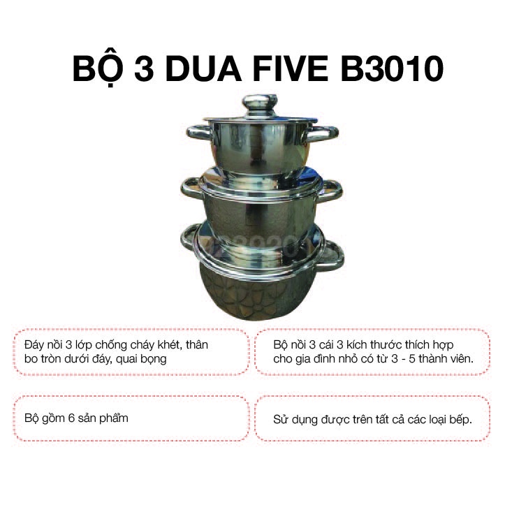 Giới thiệu Bộ 3 nồi DUA FIVESTAR B3010