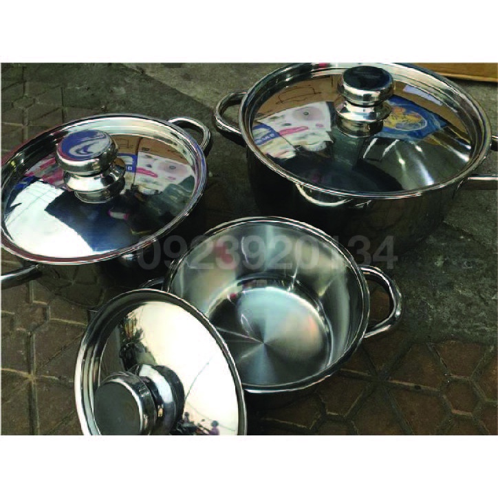 Bộ 3 Nồi Inox 3 Đáy FIVE STAR FS-B3010 Thân Tròn- Bộ gồm 6 sản phẩm: