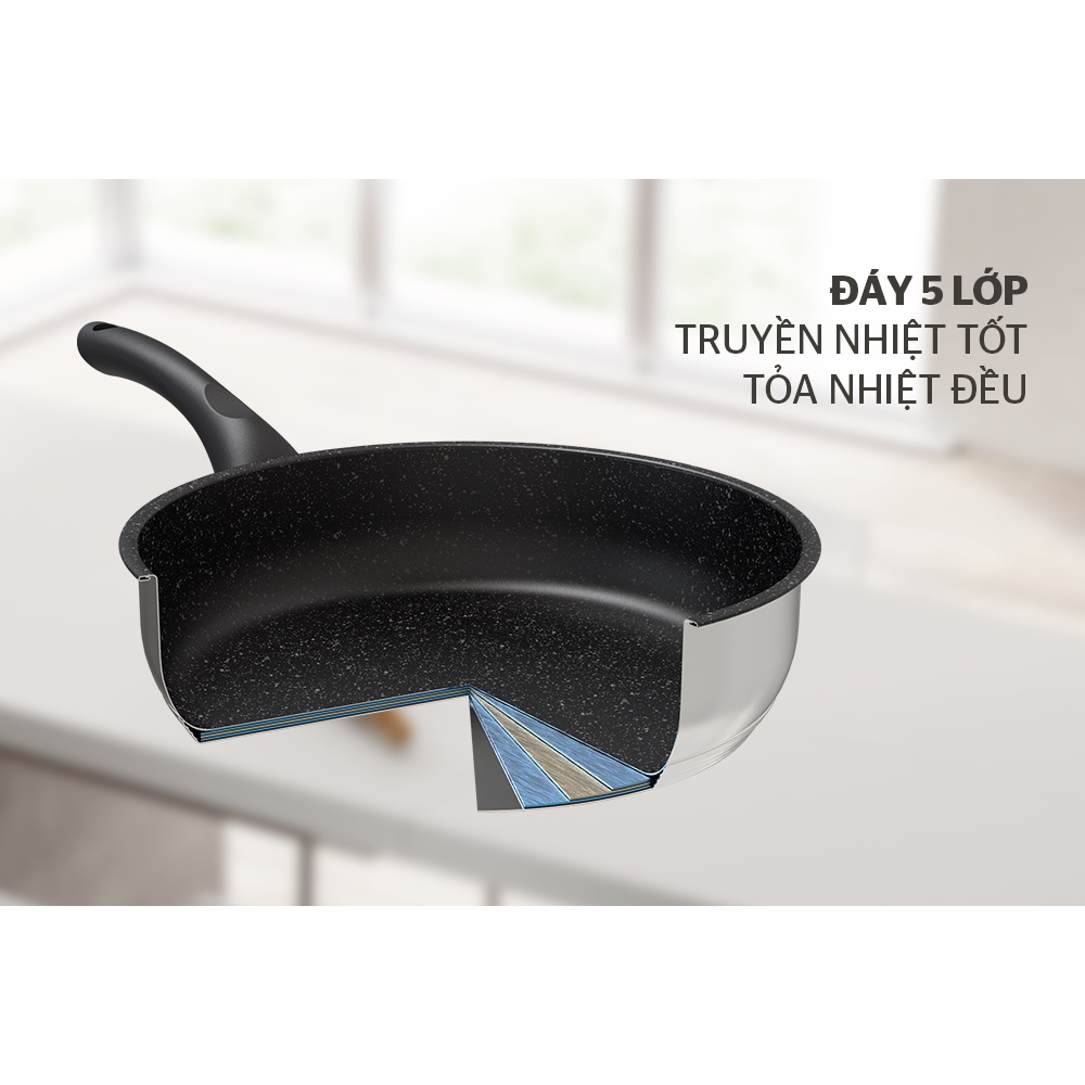 BỘ SẢN PHẨM GỒM 3 NỒI INOX 5 ĐÁY SIZE 16-20-24CM VÀ 1 CHẢO SIZE (20 24 26 28 CM TÙY CHỌN KÈM THEO)BỘ 3 NỒI INOX 5 ĐÁY SUNHOUSE