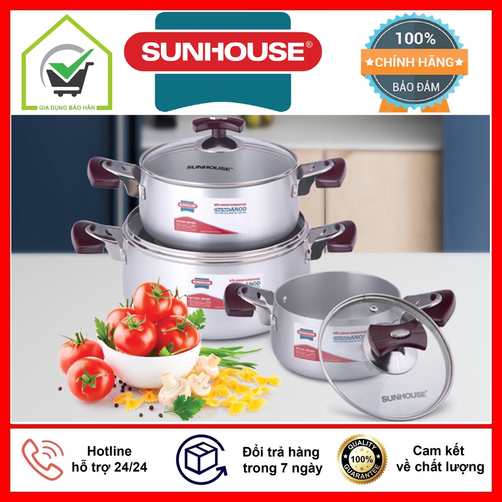 Nhà cửa & Đời sống > Dụng cụ nhà bếp > Nồi || Bộ 3 Nồi Anod Cao Cấp Siêu Bền SUNHOUSE SH8833Còn hàng