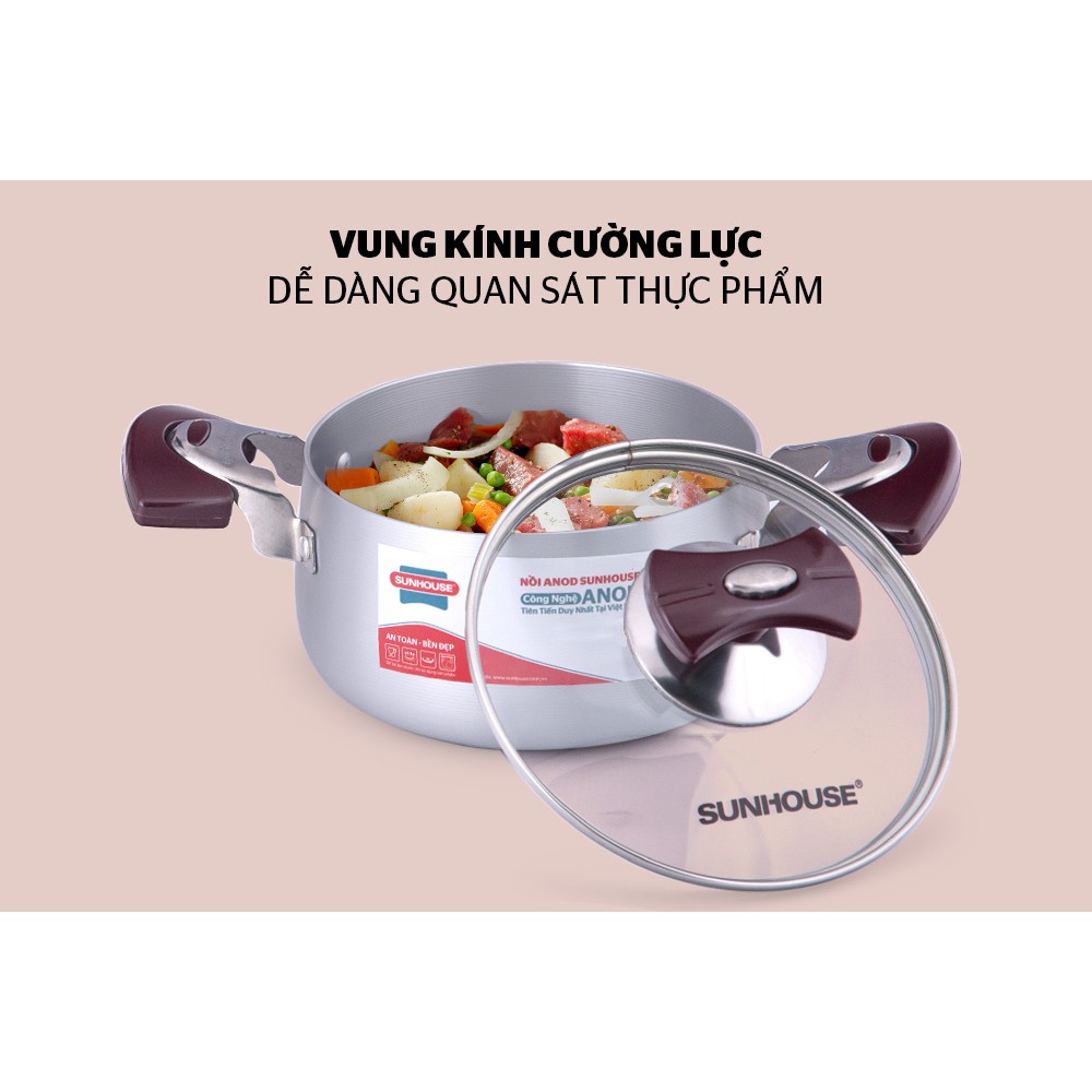 ✔️ Bền bỉ tuyệt vời: Với độ bền cứng gần bằng kim cương, các nồi nhôm Anod SUNHOUSE giảm tối đa tình trạng móp méo khi va đập. Đặc biệt, khác với nồi nhôm thông thường, nồi nhôm Anod hoàn toàn không bị nổi đốm muối trắng hay ăn mòn dù tiếp xúc với những món chua, mặn.