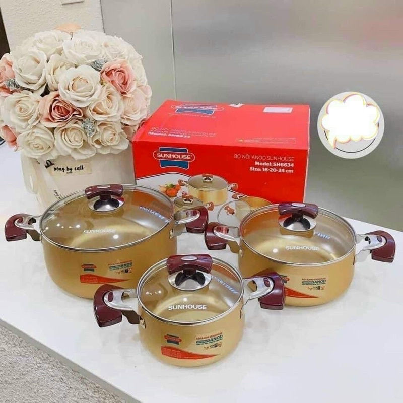 Nhà cửa & Đời sống > Dụng cụ nhà bếp > Nồi || Bộ 3 nồi Anod Sunhouse cỡ 16-20-24 cmCòn hàng