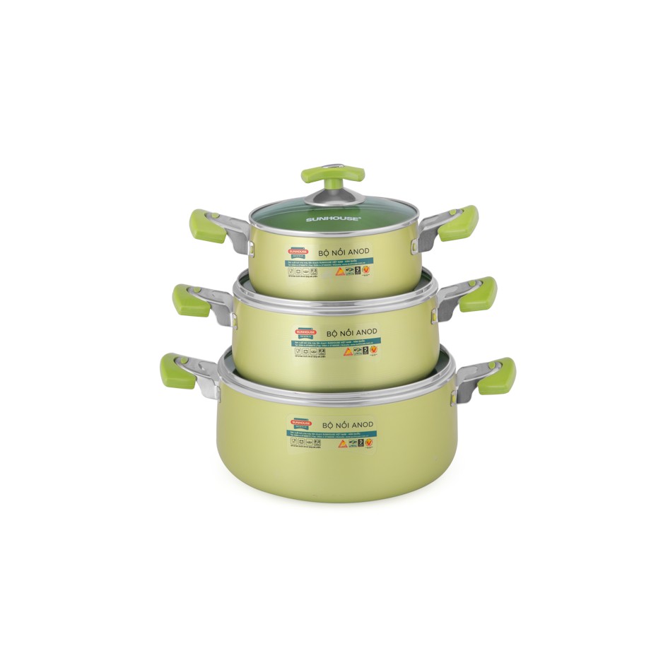 Bộ 3 Nồi Anod Sunhouse SH883, Hàng Cao Cấp, An Toàn Bền Đẹp