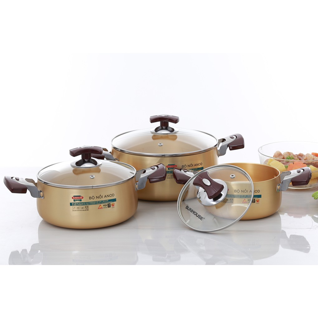 Nhà cửa & Đời sống > Dụng cụ nhà bếp > Nồi || Bộ 3 nồi Anod vàng Sunhouse SH6634Còn hàng