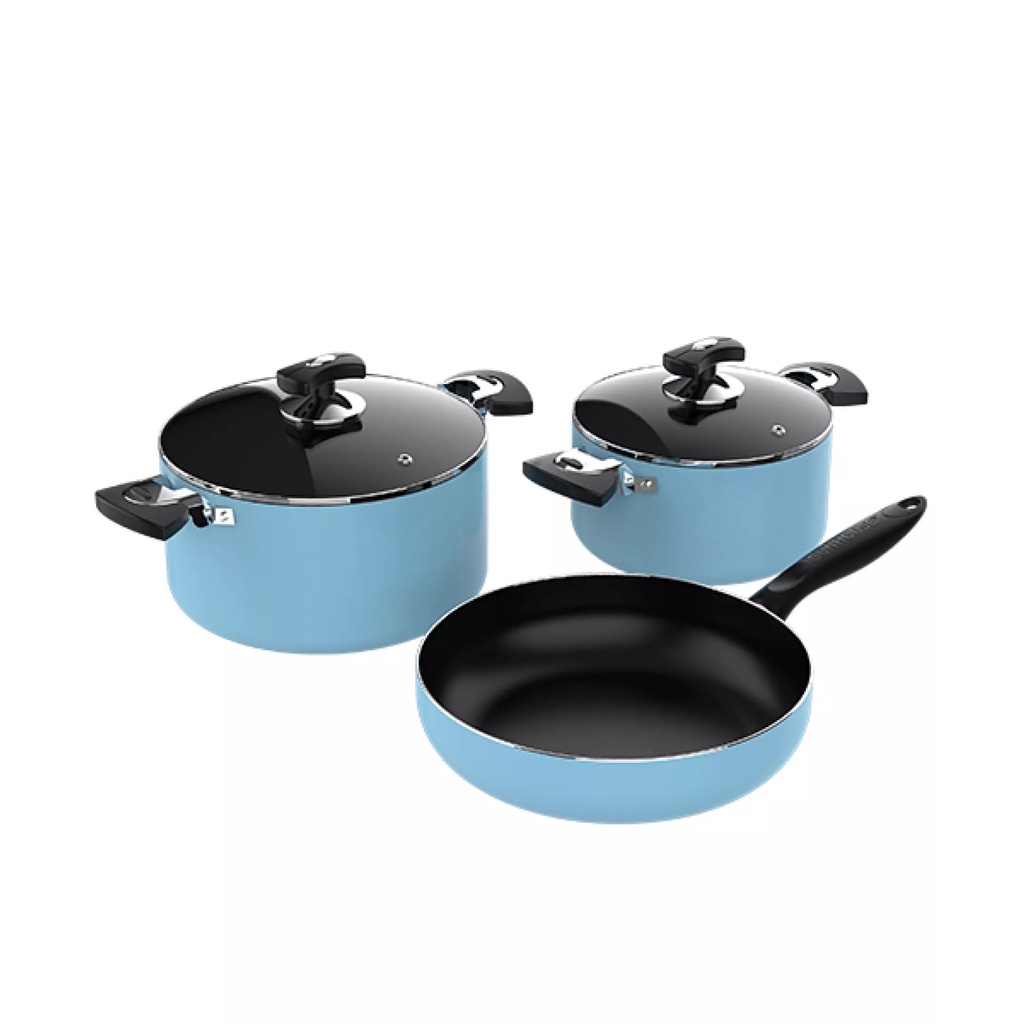 Bộ 2 nồi 1 chảo chống dính đáy từ SUNHOUSE có thiết kế bắt mắt, nổi bật với màu xanh dương, tạo điểm nhấn cho căn bếp của bạn. Nồi được làm bằng chất liệu nhôm cao cấp giúp truyền nhiệt tốt, vung kính cường lực, quai núm inox và nhựa bakelit chắc chắn, bền đẹp. Bộ sản phẩm gồm 02 nồi với đường kính 20 – 24 cm và 01 chảo sâu lòng đường kính 26cm giúp bạn sử dụng linh hoạt để chế biến những món ăn thơm ngon và bổ dưỡng cho gia đình.