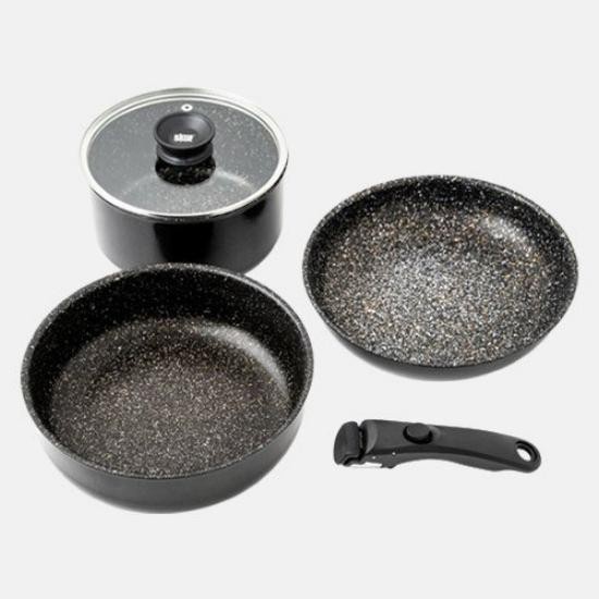Giới thiệu Bộ 3 nồi chảo Easycook đáy từ, chống dính, tay cầm đa năng 6 món Kims Cook