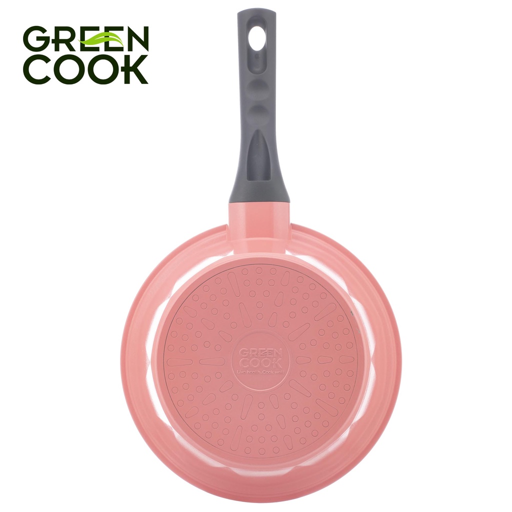 Bộ 3 nồi đúc ceramic vân đá chống dính đáy từ 18 cm, 20 cm và 24 cm Green Cook GCS02 màu hồng công nghệ Hàn Quốc