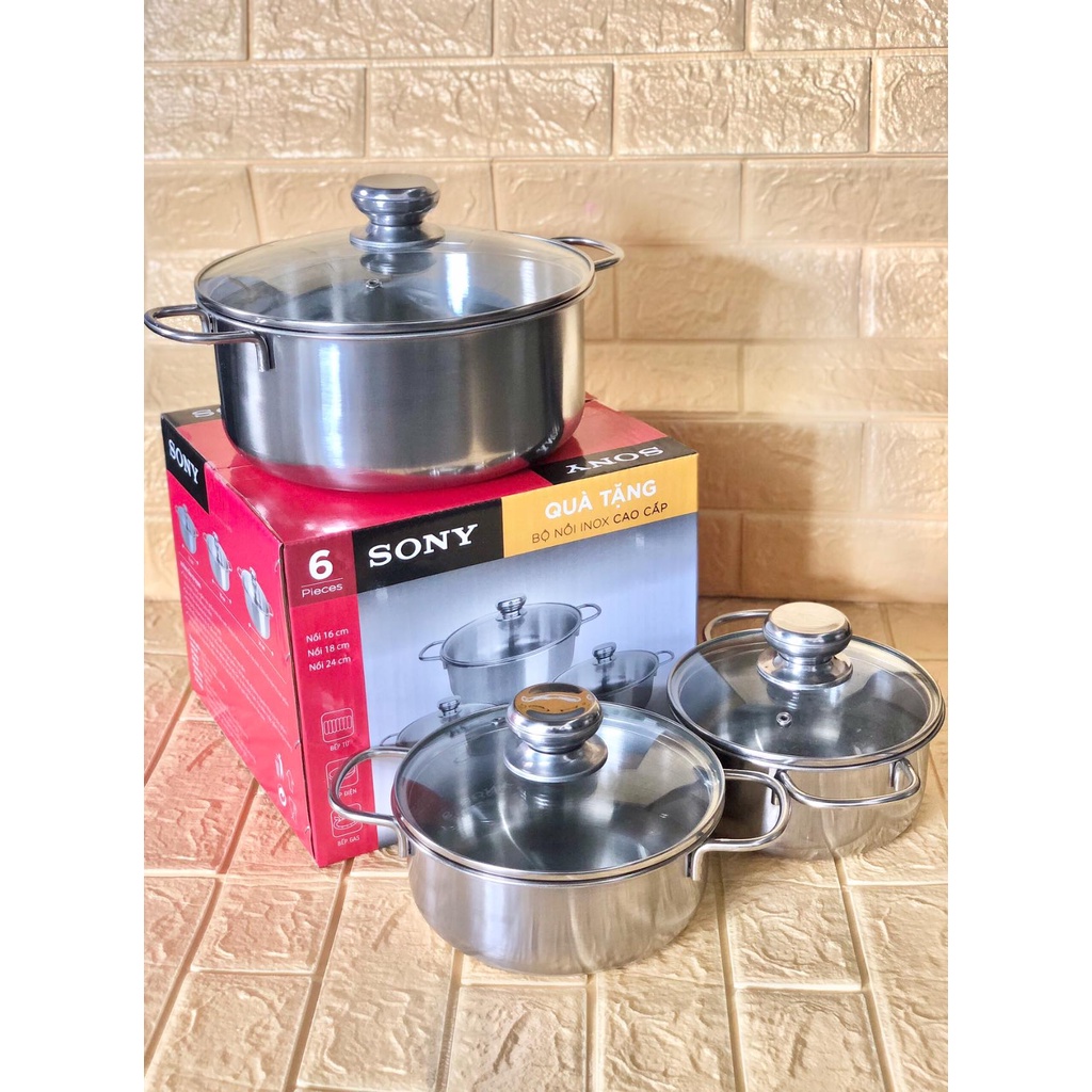 Kích thước gồm 3 nồi : size 16 + 18 + 24 cmNồi làm từ nguyên liệu inox không bị oxy hóa, có thể sử dụng lâu dài an toàn cho sức khỏe, thu nhiệt nhanh, tỏa nhiệt đều giúp đun nấu nhanh, tiết kiệm nhiên liệu (gas, điện,…), duy trì độ sáng bóng một cách lâu bền và luôn đẹp như mới.