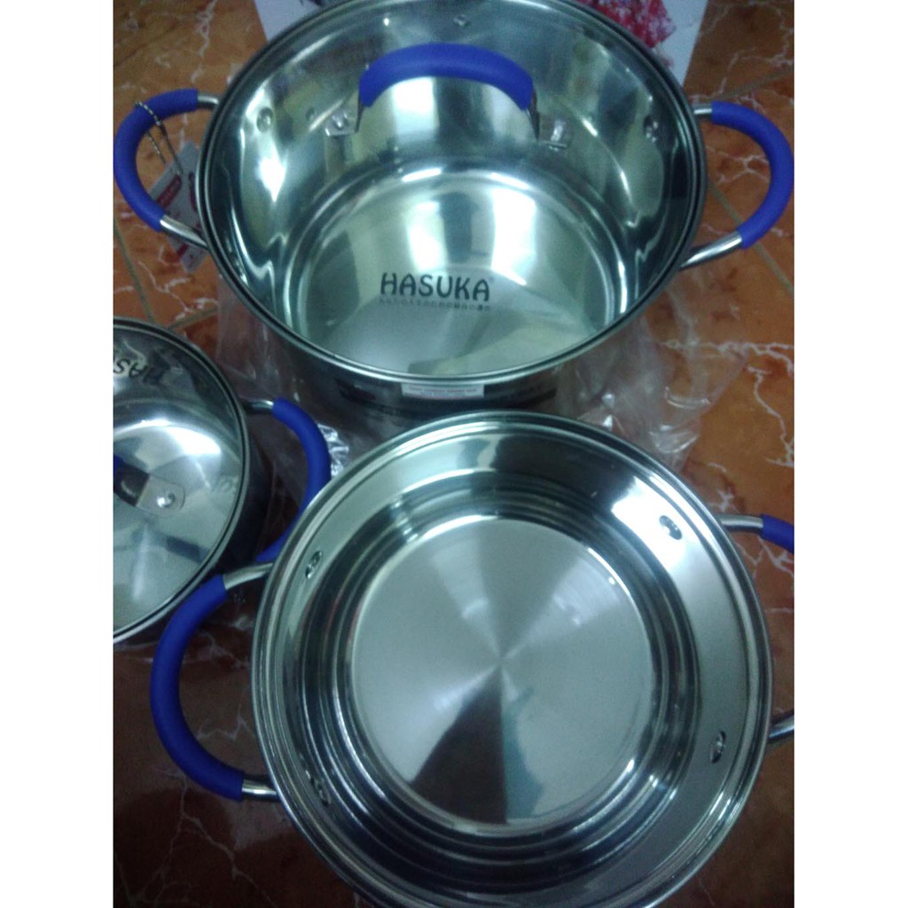 Nhà cửa & Đời sống > Dụng cụ nhà bếp > Nồi || Bộ 3 nồi Inox 16 - 20 - 24cm Hasuka nắp kính dùng bếp từCòn hàng