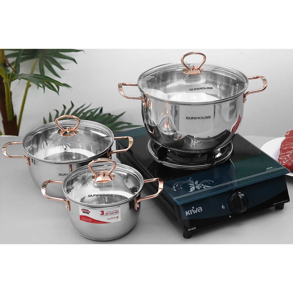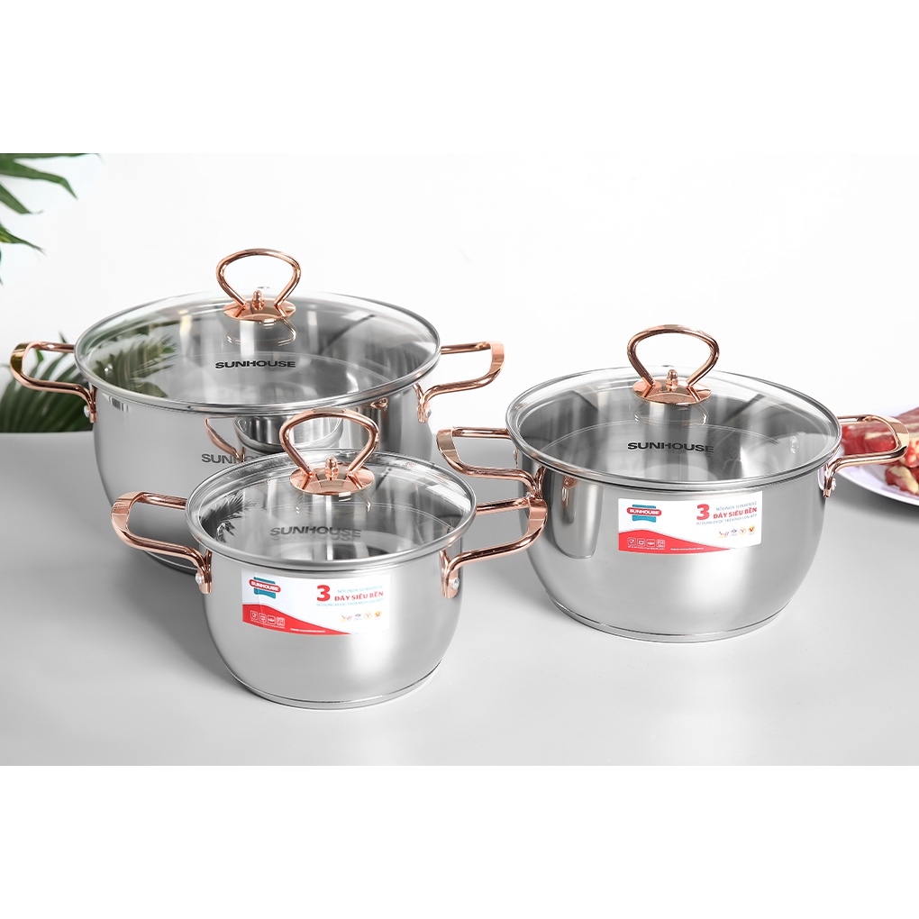 Nhà cửa & Đời sống > Dụng cụ nhà bếp > Nồi || Bộ 3 Nồi Inox 3 Đáy Cao Cấp Dura Pro Sunhouse SHG306Còn hàng