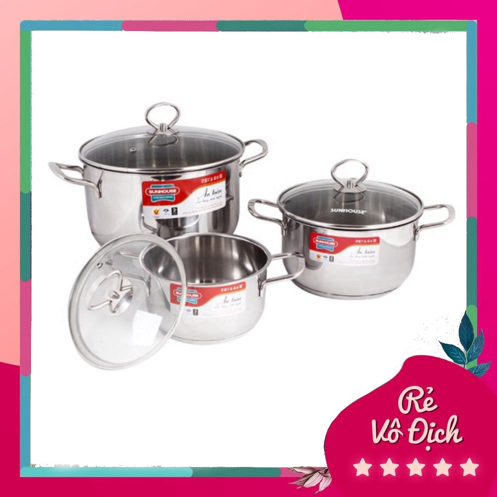 Nhà cửa & Đời sống > Dụng cụ nhà bếp > Nồi || Bộ 3 nồi Inox 3 đáy đế từ Sunhouse SH888(16cm-20cm-24cm)Còn hàng