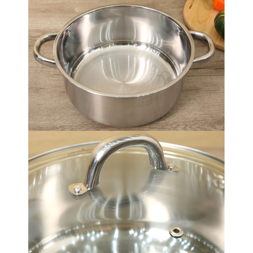 Chất liệu: Thân nồi bằng inox 430, Nắp kính chịu nhiệt