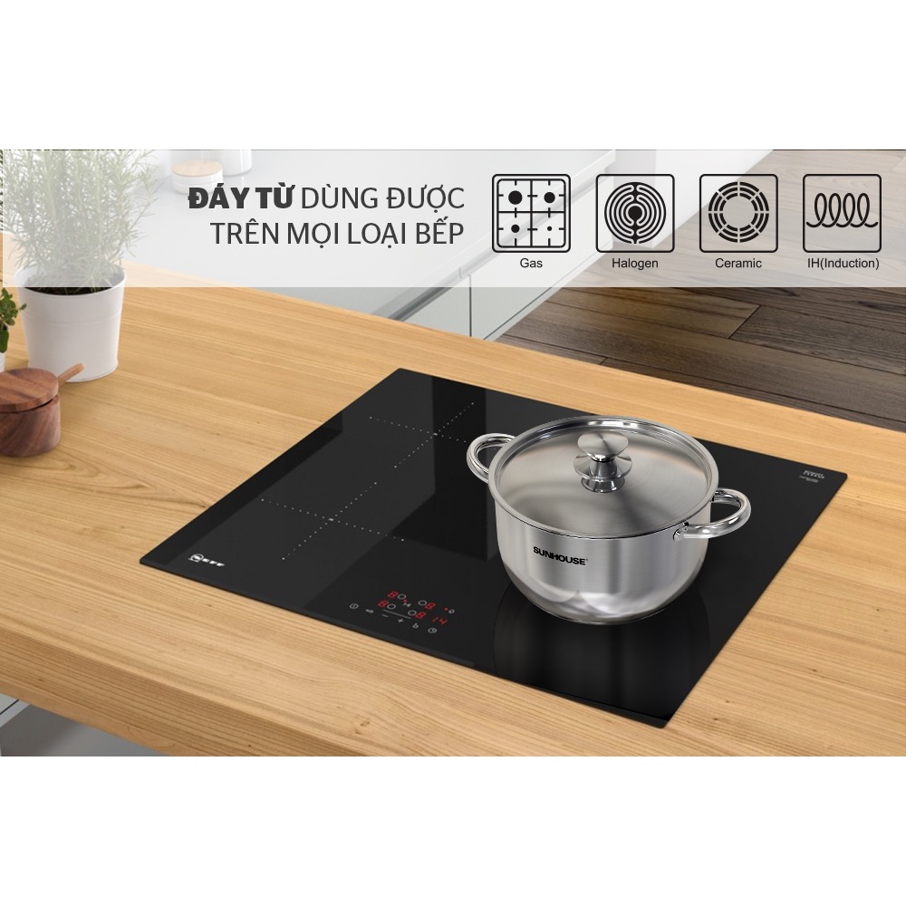 ✅ Với cấu tạo đáy từ giúp bộ nồi inox 3 đáy SUNHOUSE SHG302 dùng được trên mọi loại bếp hiện nay: bếp gas, bếp hồng ngoại, và cả dòng bếp kén nồi như bếp từ.