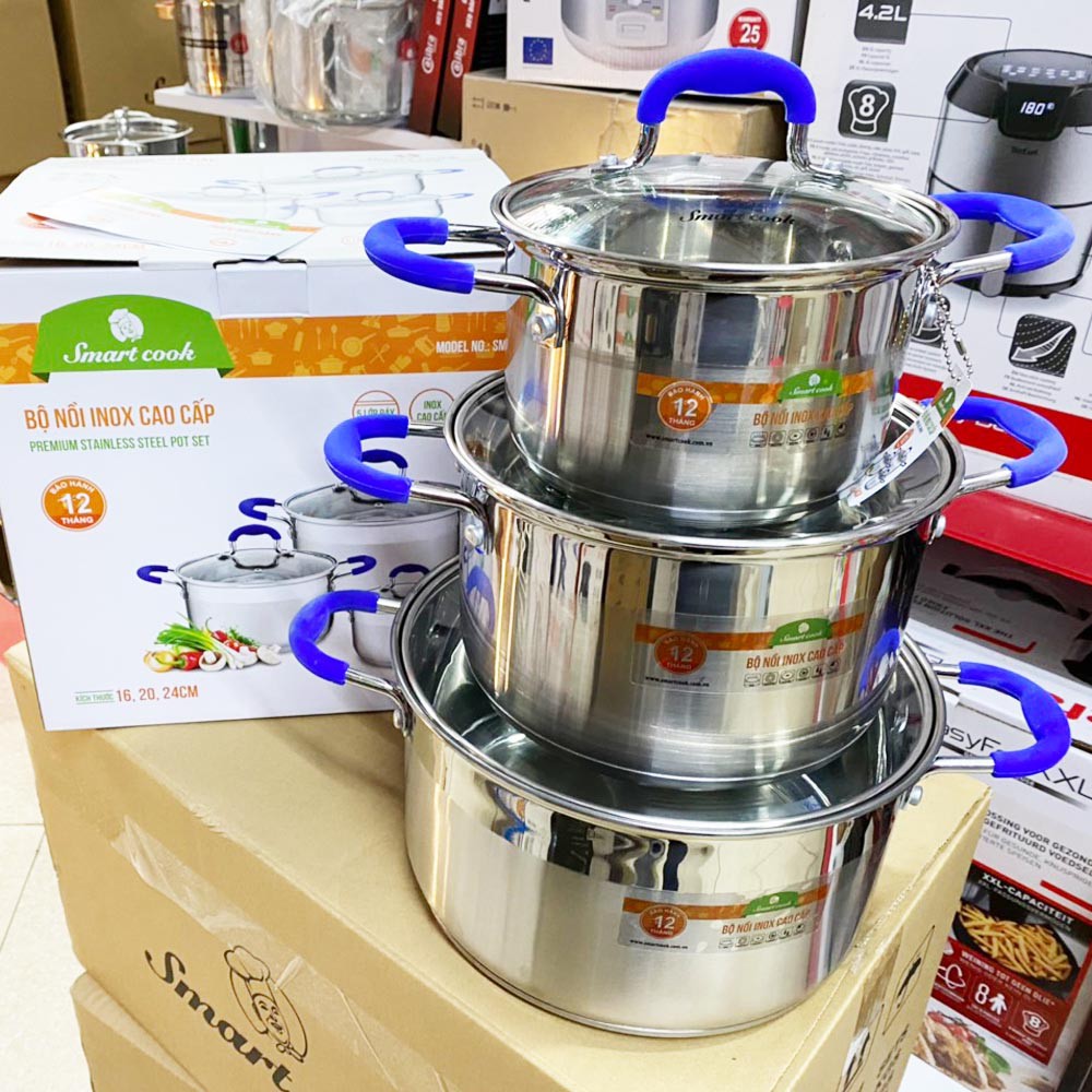 Nhà cửa & Đời sống > Dụng cụ nhà bếp > Nồi || Bộ 3 nồi Inox 304 5 đáy size 16, 20 và 24cm Elmich Smartcook SM-5961 dùng bếp từ, bảo hành 12 tháng - HÀNG CHÍNH HÃNGCòn hàng