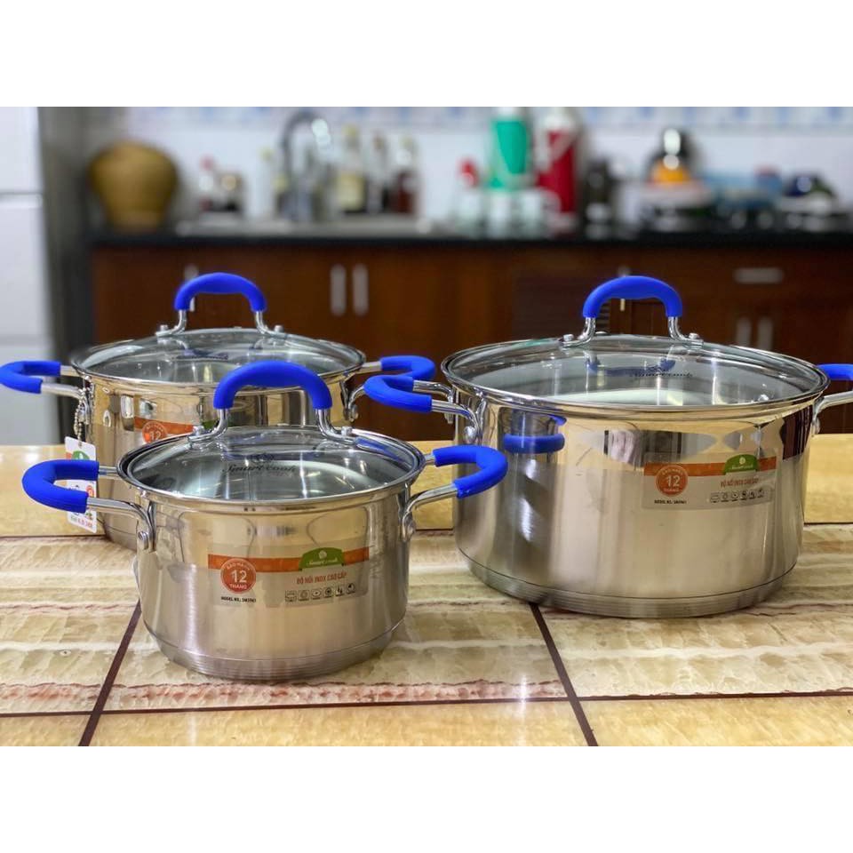 Giới thiệu Bộ 3 nồi Inox 304 5 đáy size 16, 20 và 24cm Elmich Smartcook SM-5961 dùng bếp từ, bảo hành 12 tháng - HÀNG CHÍNH HÃNG