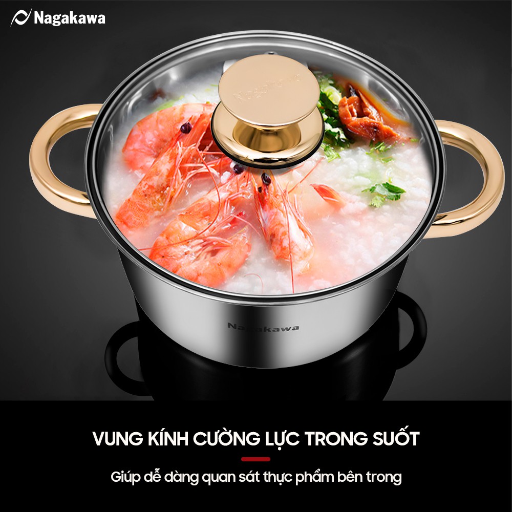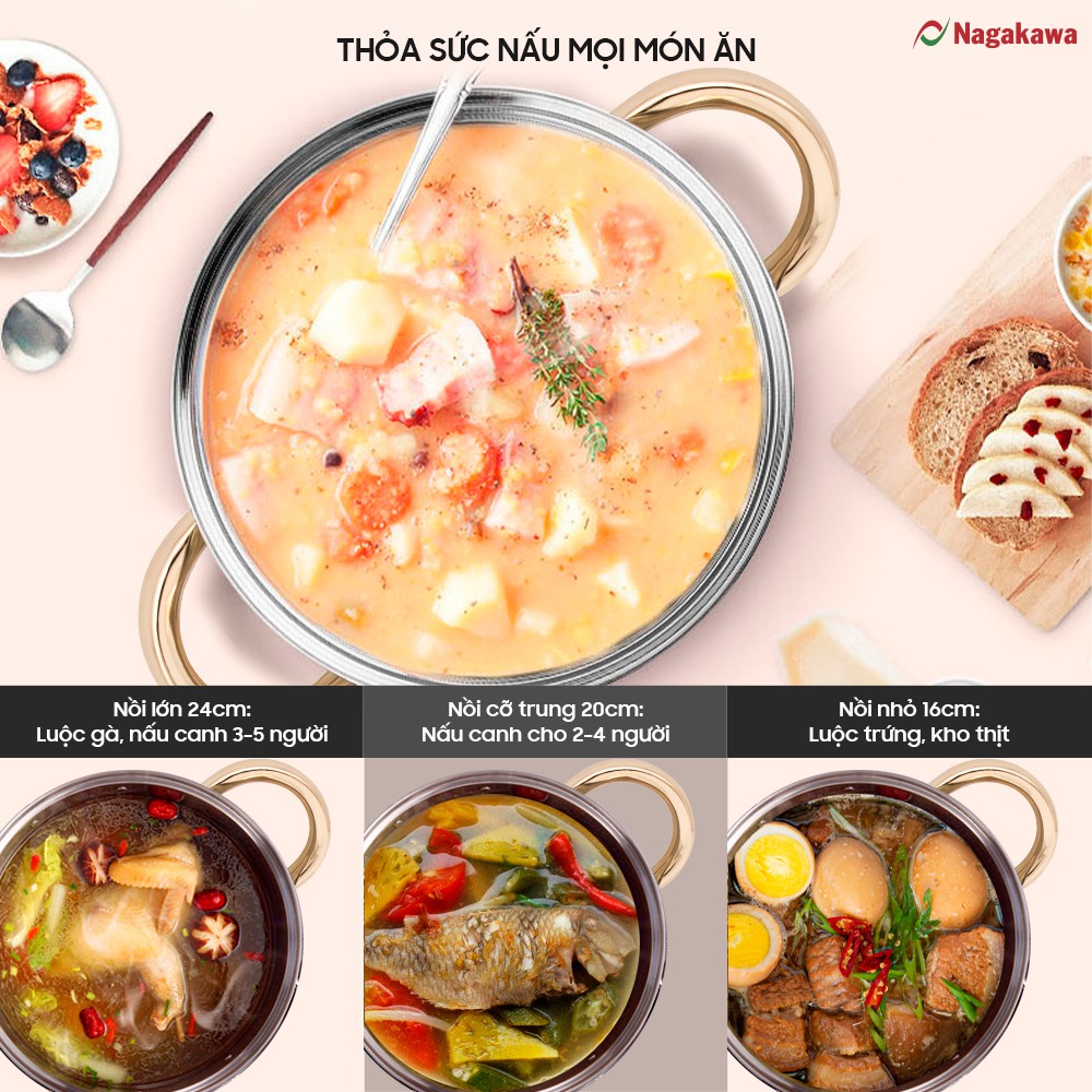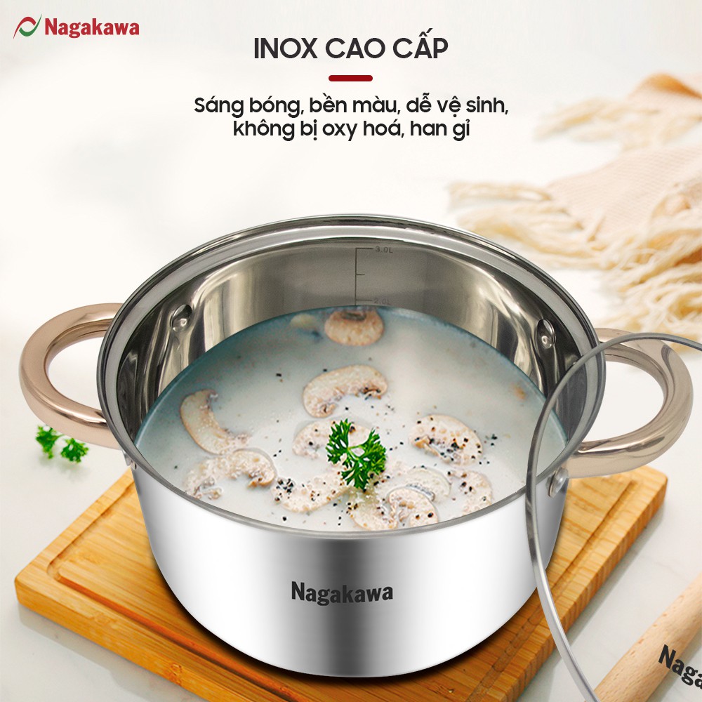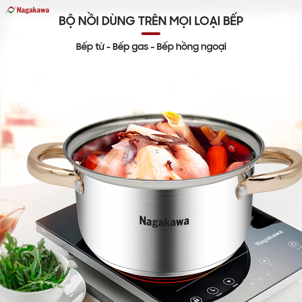 Nhà cửa & Đời sống > Dụng cụ nhà bếp > Nồi || Bộ 3 nồi inox 4 đáy Nagakawa NAG1306 (16cm, 20cm, 24cm) - Quai mạ vàng - Dùng trên mọi loại bếp - Hàng Chính HãngCòn hàng