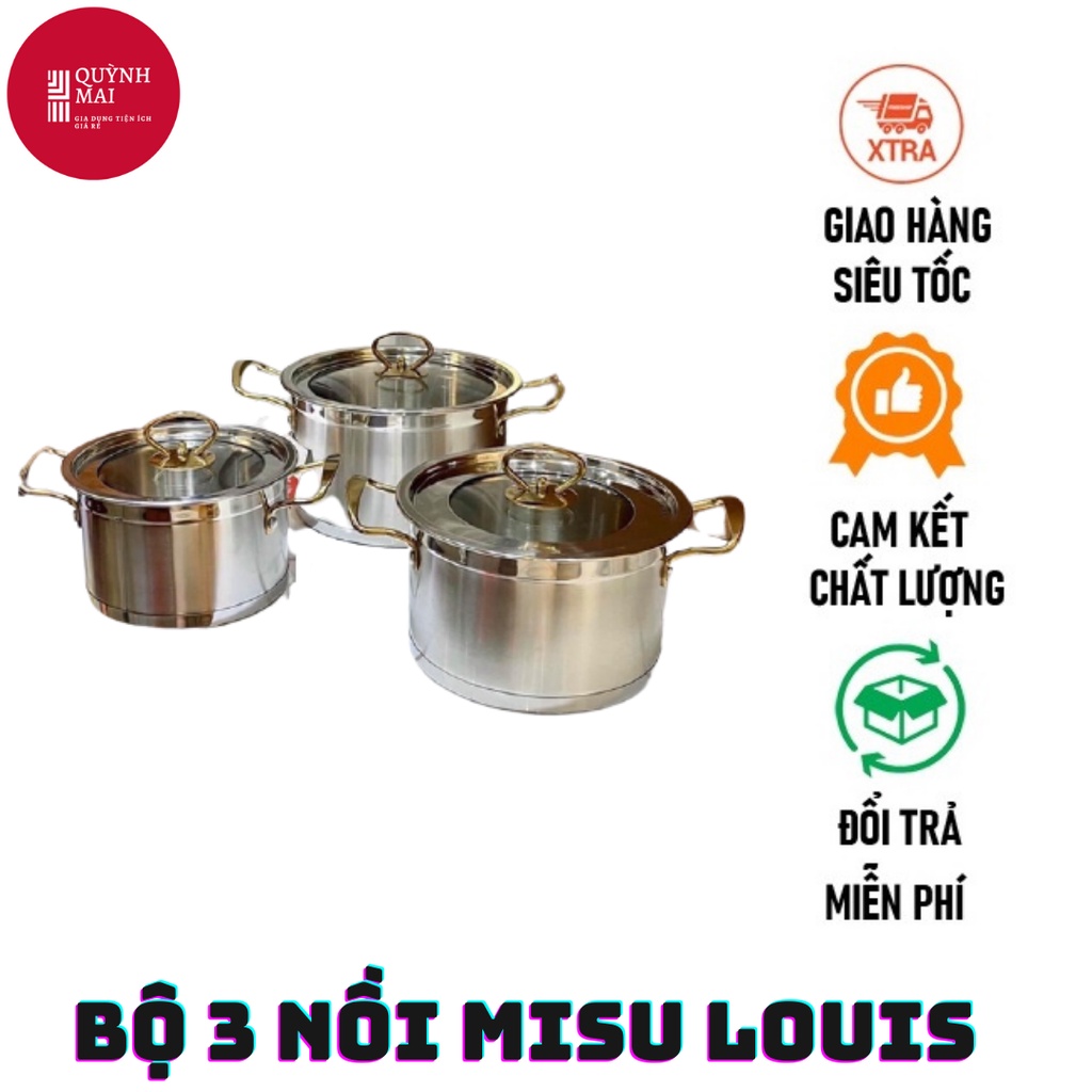 Bộ 3 nồi cao cấp MISU LOUIS cao cấp sale mạnh bộ nồi 5 đáySiêu đẹp - inoc sáng bóng - sử dụng trên mọi loại bếp