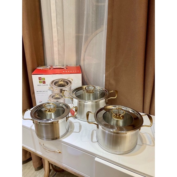 Nhà cửa & Đời sống > Dụng cụ nhà bếp > Nồi || Bộ 3 nồi inox 430 MISU LOUIS cao cấp 5 đáy nắp thuỷ tinh tay cầm cách nhiệtCòn hàng