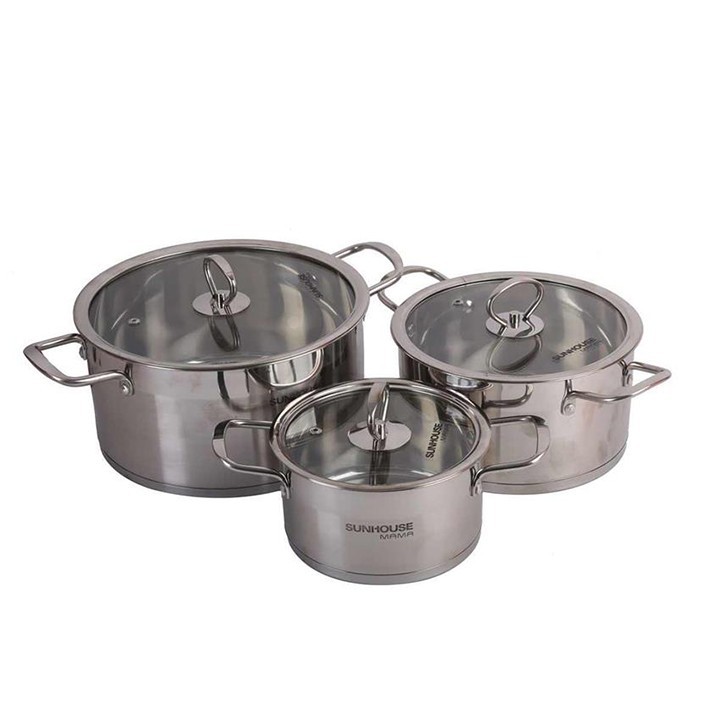 Nhà cửa & Đời sống > Dụng cụ nhà bếp > Nồi || Bộ 3 Nồi Inox 5 Đáy Nắp Kính Sunhouse MAMA SH784Còn hàng