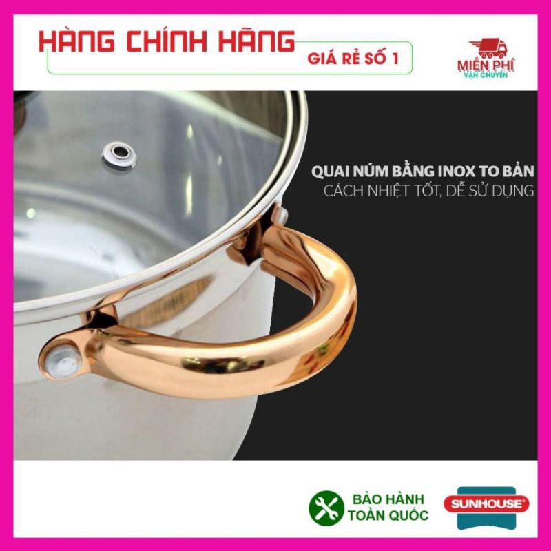 Với quai núm được chế tạo từ inox, mạ vàng cao cấp, bộ nồi inox SUNHOUSE SH781