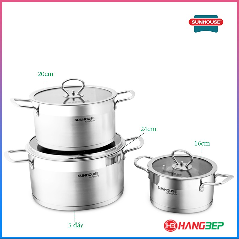 Nhà cửa & Đời sống > Dụng cụ nhà bếp > Nồi || Bộ 3 nồi inox 5 đáy sử dụng bếp từ Sunhouse MAMA SH784Còn hàng