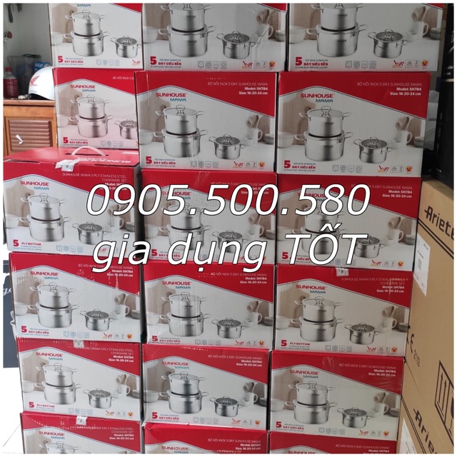 🔴 Bộ nồi inox Sunhouse MAMA SH784 - 5 đáy (16cm, 20cm, 24cm)- Bộ nồi Sunhouse MAMA SH784 gồm 3 chiếc loại 5 đáy sáng bóng phong cách thiết kế hiện đại kiểu dáng Châu Âu sang trọng, trang nhã.