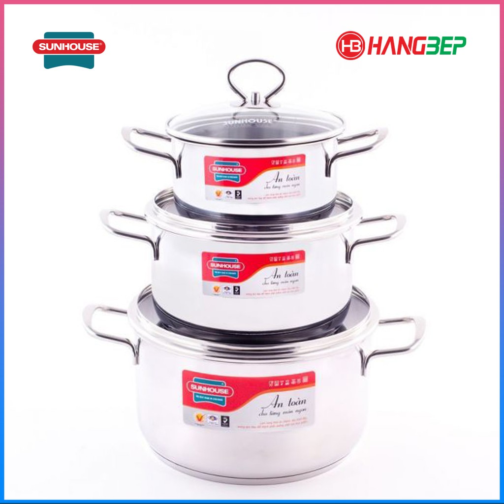 Nhà cửa & Đời sống > Dụng cụ nhà bếp > Nồi || Bộ 3 nồi Inox 5 đáy Sunhouse SH888 vung kính - Sử dụng bếp từ, hàng chính hãng 100%Còn hàng