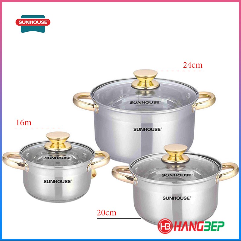 Nhà cửa & Đời sống > Dụng cụ nhà bếp > Nồi || Bộ 3 nồi inox 5 đáy từ Sunhouse SH781 (16cm/20cm/24cm)Còn hàng