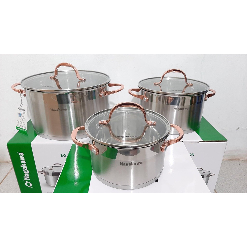 Bộ 3 nồi inox cao cấp 5 đáy Nagakawa NAG1352 (16cm, 20cm, 24cm) dùng cho mọi loại bếp