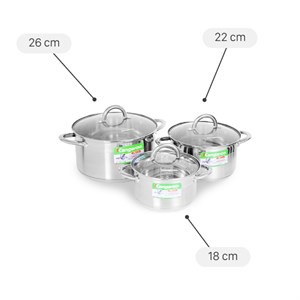 Bộ nồi Inox cao cấp 5 lớp KG876 gồm 03 nồi size 18-22-26cm.