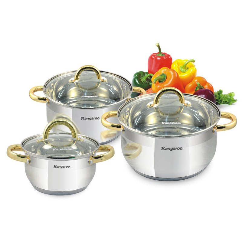 Nhà cửa & Đời sống > Dụng cụ nhà bếp > Nồi || Bộ 3 nồi Inox cao cấp 5 lớp đáy từ Kangaroo KG866 KG864 KG876 KG876S KG876L KG878 KG3CS3 KG121 chính hãngCòn hàng