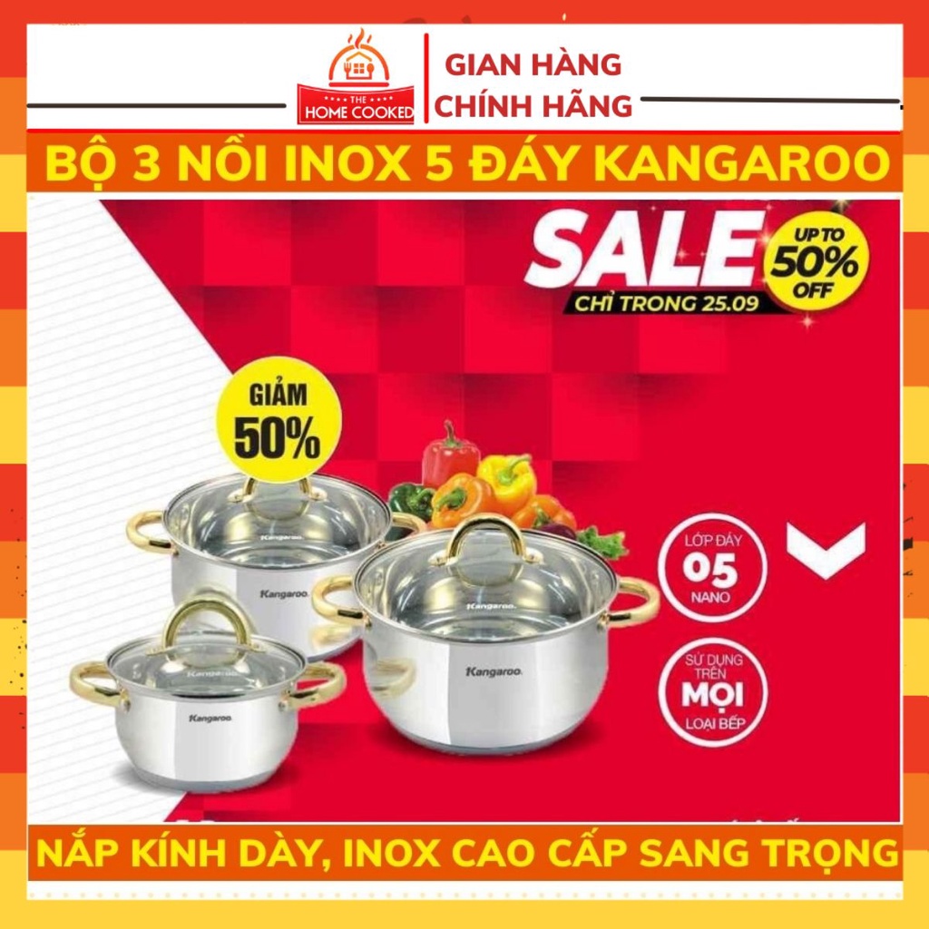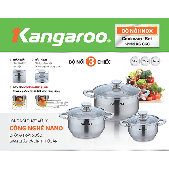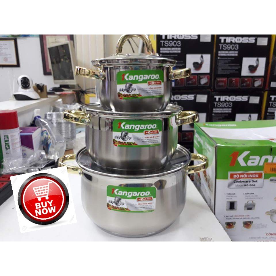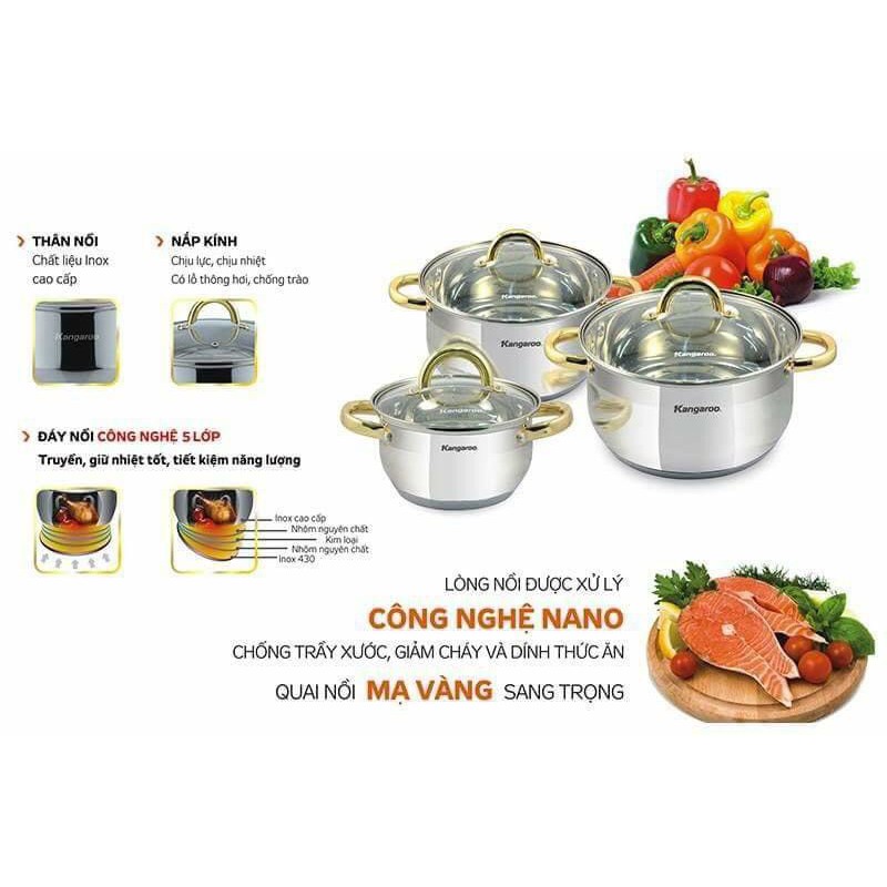 Nhà cửa & Đời sống > Dụng cụ nhà bếp > Chảo || Bộ 3 nồi inox cao cấp 5 lớp Kangaroo KG866Còn hàng